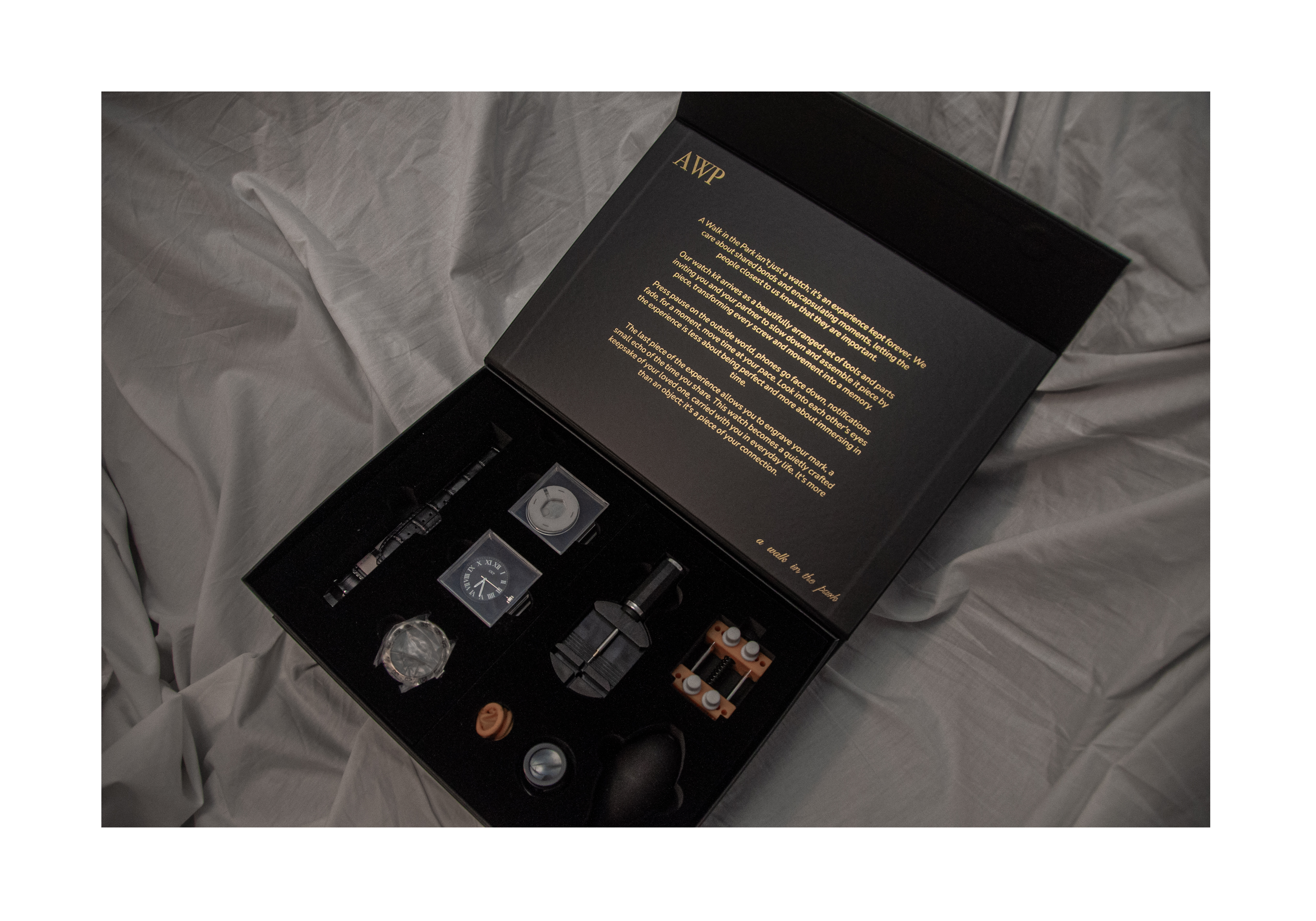 A watch, every tool you need to build it, and an engraving kit to make it completely yours.